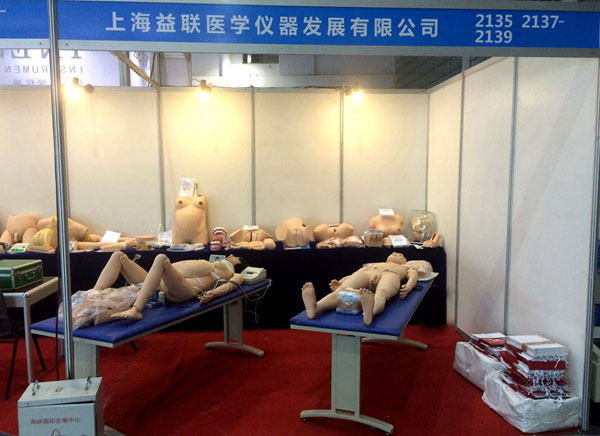 上海益聯攜高級生命支持模擬人系統、急救技能訓練模型、護理技能訓練模型、婦嬰技能訓練模型等產品亮相此次展會。展會現場,數百名客戶蒞臨益聯展位參觀、咨詢,我司的品牌和產品得到了客戶的高度認可。