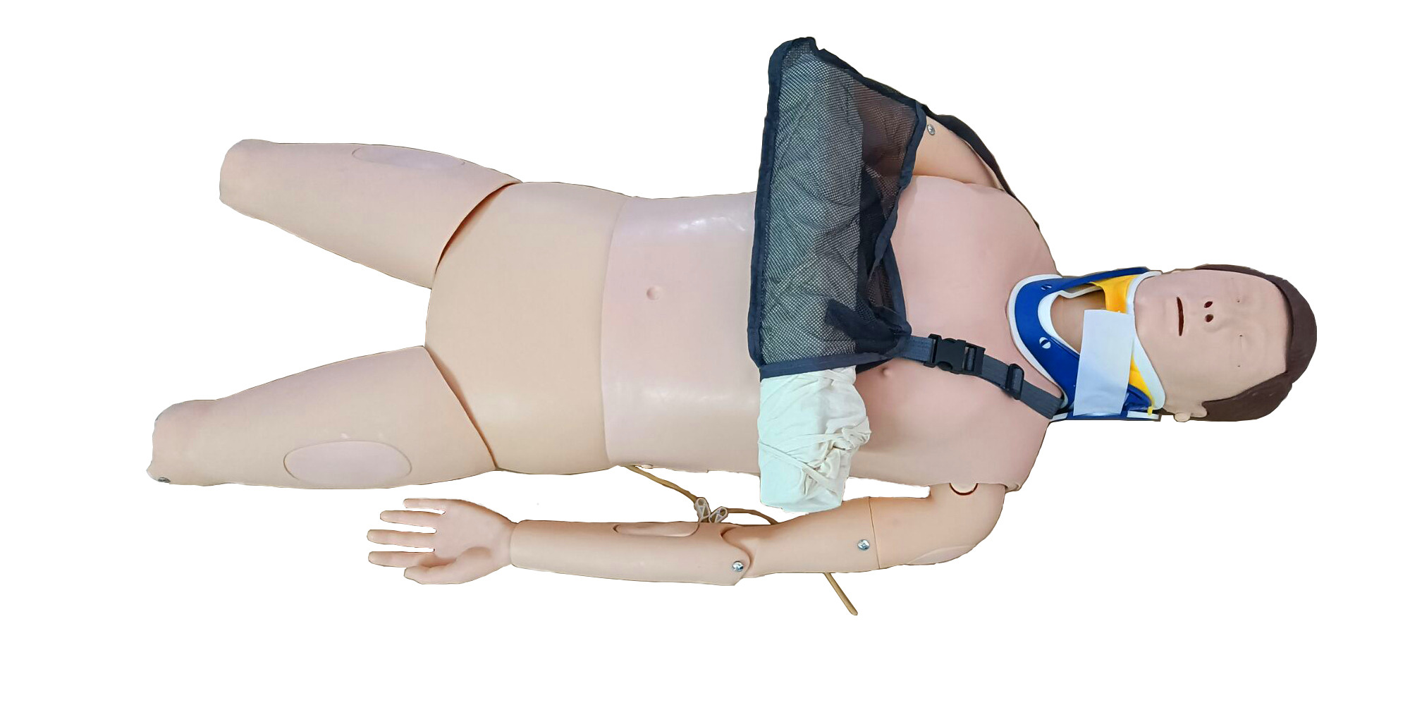 四肢骨折急救外固定訓練仿真標準化病人具有上肢前臂及下肢小腿骨折創傷。使學生了解骨折所具備的反常運動、成角畸形、活動后產生骨擦聲,骨折上下肢需及時用夾板固定,防止反復活動造成骨折周圍血管神經損傷。