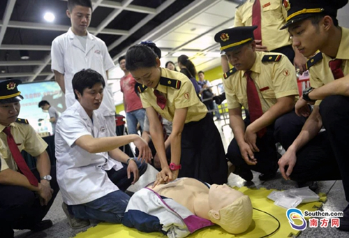 5月8日是第69個世界紅十字日,省市紅十字會、省中醫院、廣州地鐵公司,聯合舉辦以“博愛奉獻、生命救護、全程為你”為主題的急救技能培訓走進廣州地鐵活動,多單位攜手將“急救白金十分鐘”的理念和技能送進地鐵。