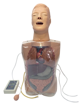 高級三腔二囊管模型是為適應臨床急救醫學教學、培訓需要而研制開發的教具。產品為成年男性上半身模型,模型前半身采用透明塑料制成,可觀察胸腔、腹腔內臟器的位置和形態結構,直視下觀察三腔二囊管插入壓迫止血以及洗胃管插入洗胃(lavage)操作的全過程,更適用于三腔二囊管插入壓迫止血以及洗胃實踐操作訓練。該模型從外形到部件均以正常人體解剖結構為依據,形態逼真,模擬真實,臨床感覺強,插入三腔二囊管、洗胃管與真實人體操作相似。模型還具有多功能特點,可進行鼻飼、胃鏡、氣管切開、口腔護理等操作訓練、實驗室檢查以及模擬生命體征瞳孔變化等功能訓練。適用于高等醫學院校、護理學院、職業衛生技術學院等專業和臨床醫護人員教學示教及學員實踐操作訓練。