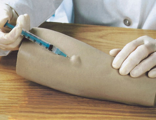 模型的手臂部分提供了多個部位進行皮試練習,有些模型甚至具有不同等級紅色皮丘的模擬效果。