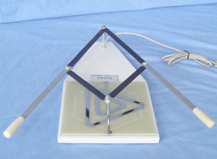 產品概述: EP714 雙臂調節器,是一種研究注意分配的技能型操作設備。被試通過雙臂的協調動作,盡可能快又準確的移動在軌跡上,完成一周所用時間及出錯次數反映了被試的注意分配及雙臂協調的能力?捎糜谶\動感覺能力與情緒穩定性的測定,也適用于職業選擇以及操作人員雙臂協調能力以及注意分配力的鑒別。 儀器組成: 儀器由本體和圖形板組成,本體上配有連接計時計數器的輸出插座,由計時計數器記錄實驗時間及出錯次數。可選用 EP001 或 EP105 計時計數器。 EP714(A) 雙臂調節器附EP105型計時計數器 EP714(B) 雙臂調節器附EP001型計時計數器