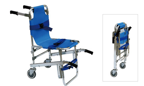 技術特點: 本擔架主要適用高層建筑上下樓梯轉移病人。本擔架采用折疊式結構,折疊后體積。擔架設有兩個輪子;擔架靠背后端設有兩支可折疊把手,擔架前面下端設有兩支可伸縮抬桿。擔架配備三副安全帶,以保證病人在轉移過程中的安全。采用高強度鋁合金材料制成,它具有重量輕,體積小,攜帶方便、使用安全、易消毒清洗等優點。