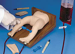 | 1、該模型模仿6月大的小兒下半身 2、小兒雙腿脛骨均可行骨穿操作,針感逼真,進入后會有落空感,相應人造骨髓會流出 3、皮膚、骨可替換 The Life/form® Intraosseous Infusion Simulator is a dramatic and exciting training aid designed to demonstrate and simulate the intraosseous infusion procedure. Students will be able to learn and practice, with incredible accuracy and realism, a procedure which has been difficult to simulate in the past. Prior to the Intraosseous Infusion Simulator, educators resorted to unsanitary chicken and turkey bones. PALS programs will find this teaching aid a convenient and sanitary alternative. This simulator is also very cost-effective due to replacement bones and skins which extend the life of the simulator indefinitely. Use a 15-gauge needle during simulation. The bones used in the model have been designed with four sides, each side having the ability to be punctured several times. In addition, three palpable landmarks, including patella, tibia, and tibial tuberosity are located in both legs. Both legs have also been designed so that aspiration is possible. Life/form® Intraosseous Infusion Simulator represents a six-month-old infant. Included with the simulator are 10 replaceable bone inserts, 2 sets of replacement leg skins, 2 white towelettes, syringe with tubing, blood powder, sealing wax, 1/2 oz. liquid lubricant, mixing bottle, needle, and hard carrying case. Three-year warranty. |