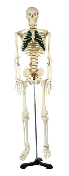 這是一款高級的、高質量的硬脊椎模型。這款貴重的教學模型顯示脊椎、神經根、脊椎動脈、分椎間盤、用綠色加深的胸部軟骨、可分成3件的頭顱和手足。這款精確的模型包含成人的200塊骨頭,四肢可彎曲到任何自然的狀態,除手足外全部用關節連接。這款受歡迎的案頭模型適用于康復治療、理療和運動醫學專業使用。鐵質座。尺寸:85CM。