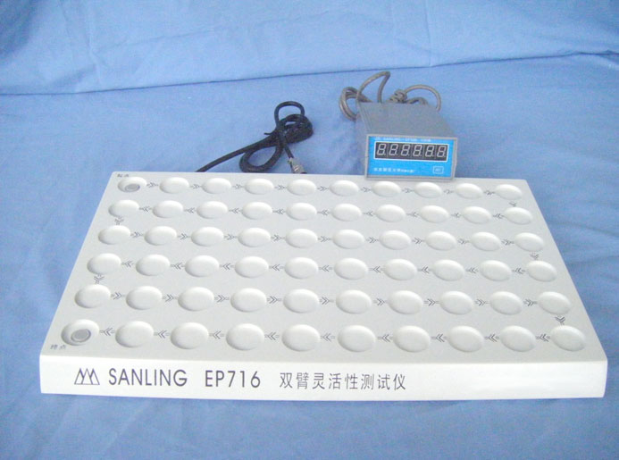 產品概述: 雙臂靈活性是指人的左、右手臂協調工作靈活程度。 EP716型雙臂靈活性測試儀是是通過測試被試拿起翻轉短圓柱體的整個操作過程所用時間,和觀察動作完善性,來反映其雙臂靈活性的水準。