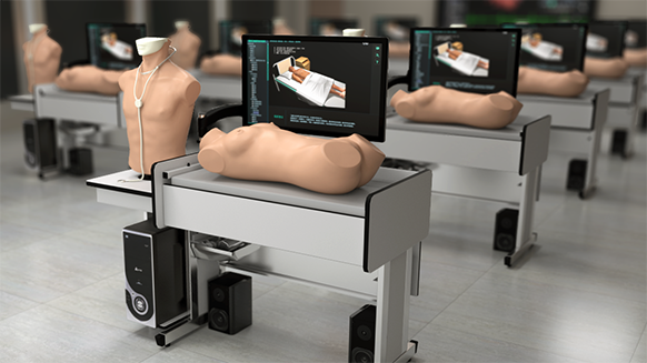 具有逼真的高仿真胸腹模擬人,采用局域網技術、三維全息無線互感技術、虛擬現實技術、一器官一驅動技術等,將頸胸腹的視診、觸診、叩診、聽診的教學、訓練和考核融為一體,設計了146個心血管體征、75個肺部體征可設置體征的部位強弱,15個腹部不同區域的疼痛模式,5種腸鳴音、10余種肝脾觸診模式等。模擬訓練系統為局域網網絡版,包括教師主控機和學生終端機多臺,符合住院醫師培訓要求,中英文雙語教學,適合于臨床醫學本科生診斷學實習和住院醫師培訓的診斷學訓練、考核使用。
